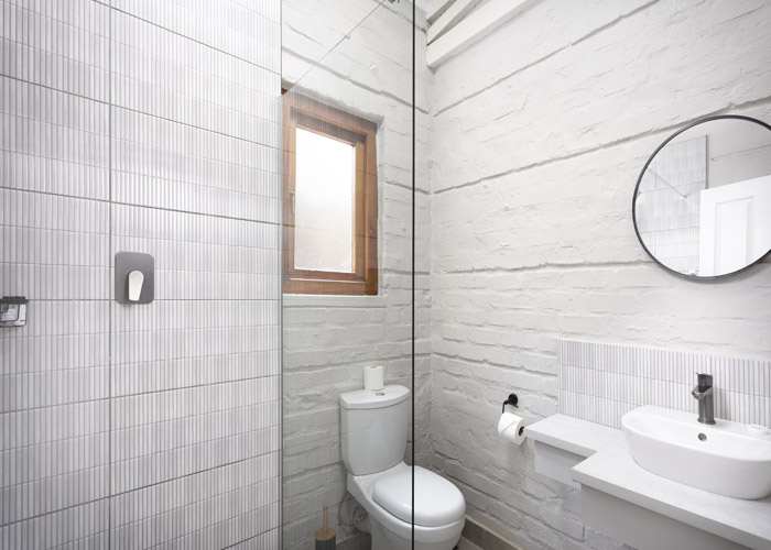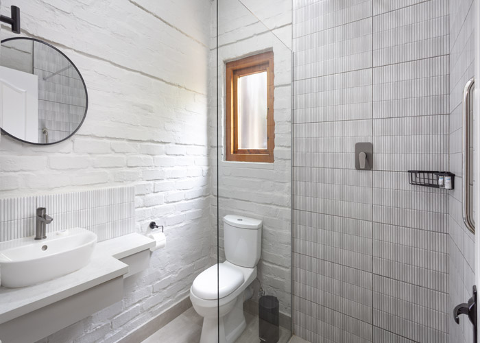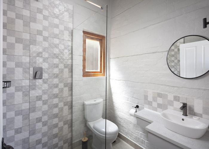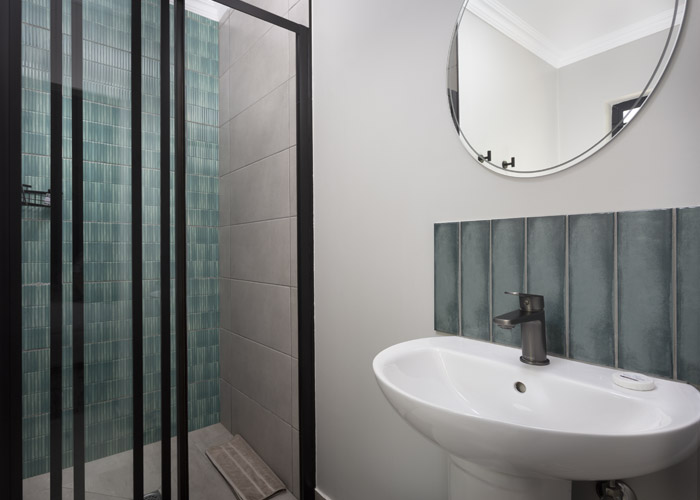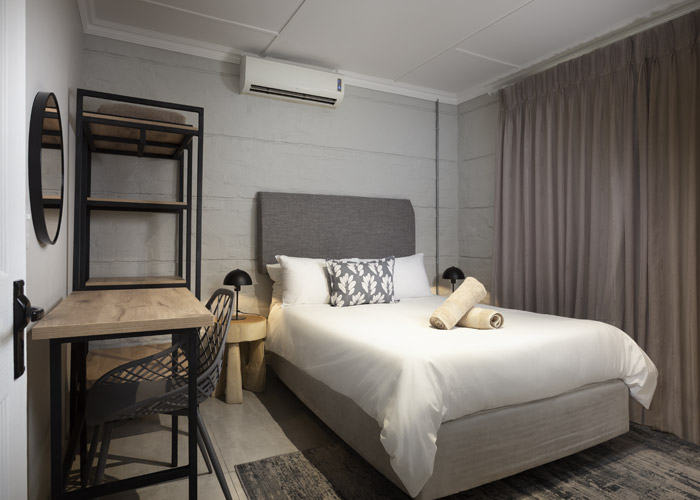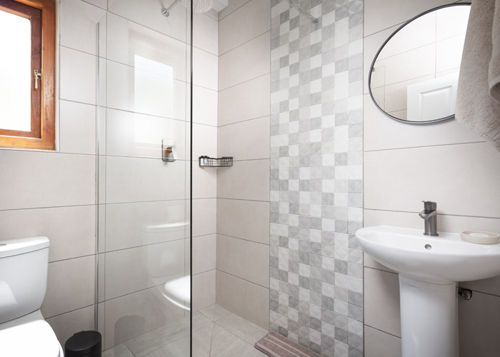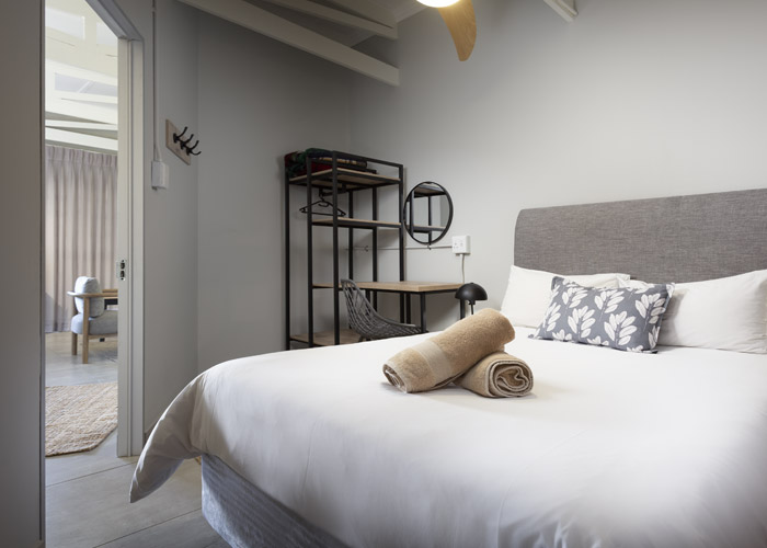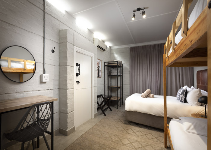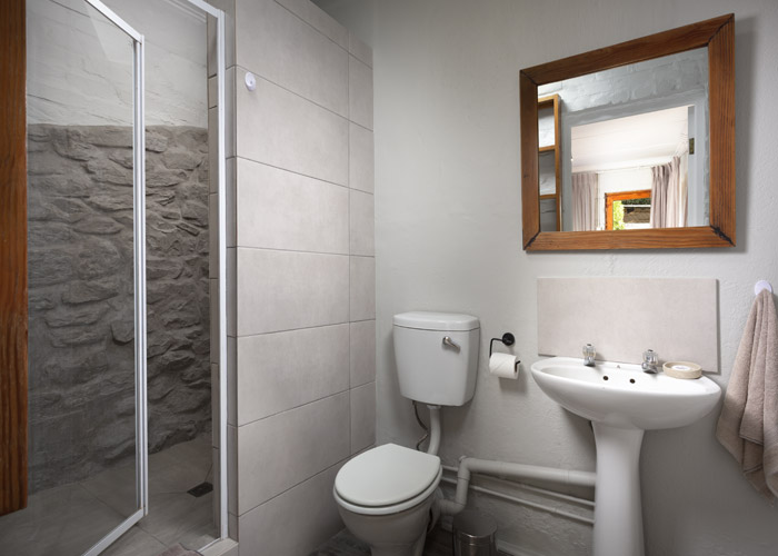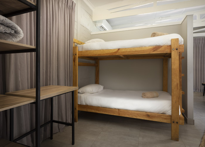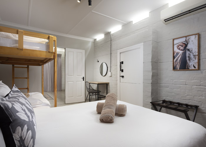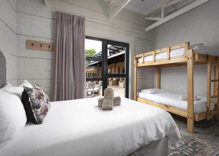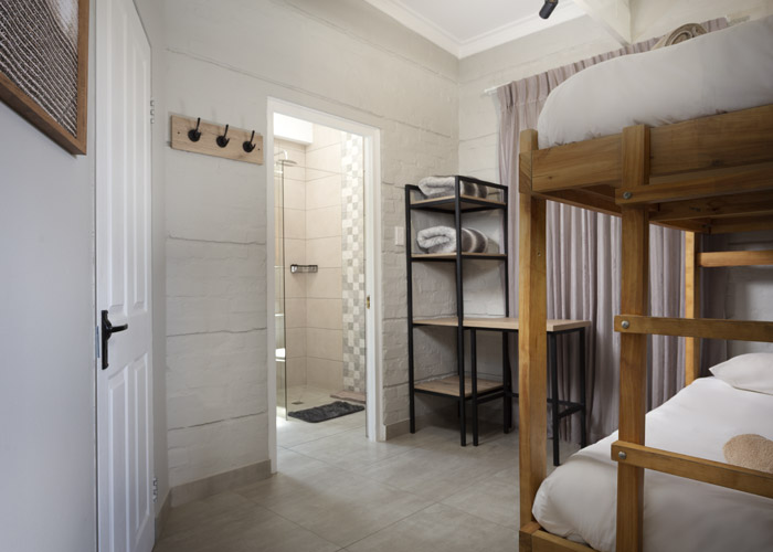 Double bed, 2 bunker single beds with en-suite bathroom (shower, basin, toilet)